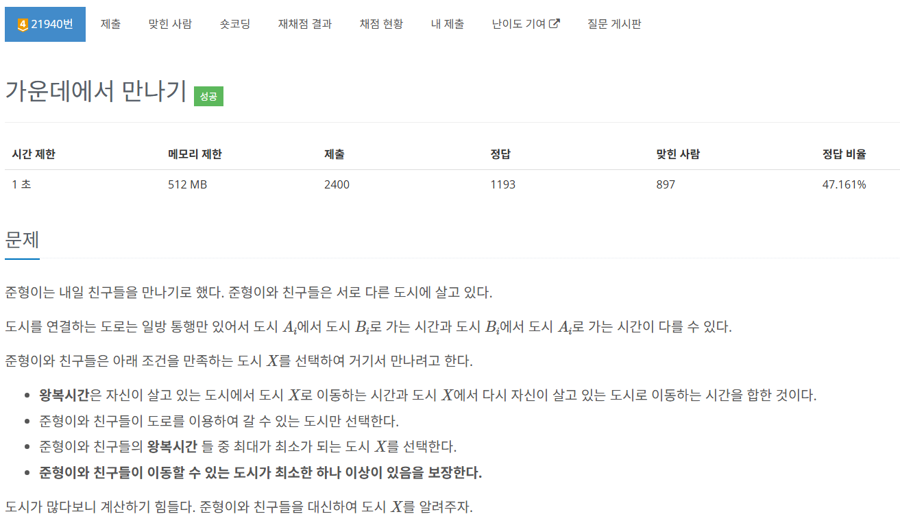 다른 점은 한 노드에서 다른 노드까지의 단방향이지만, 왕복의 가중치를 구해야 하는 점이다.