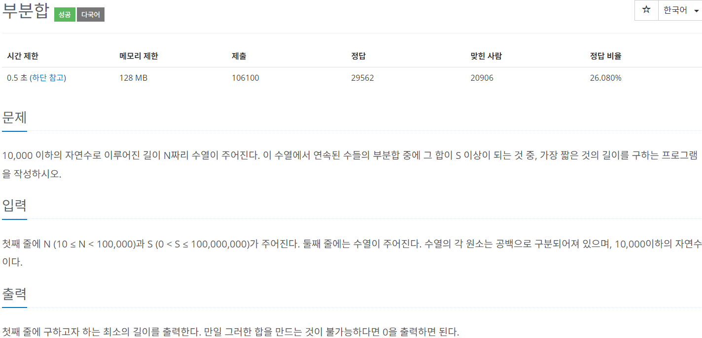 - 부분합 알고리즘과 투 포인터 알고리즘 활용